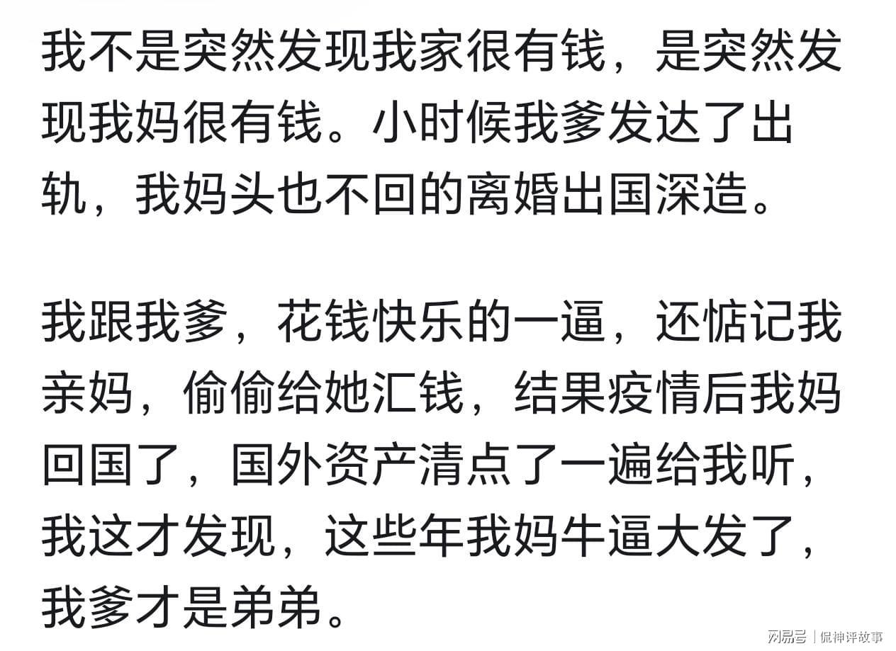 如果是真的,我有点心疼你妈啊。有钱不享受生活,存起来留给孩子。人生几十年很短,住上好房子,吃好的,用好点,一年旅游几次,钱用来改善生活,享受幸福才是正确的用法,又不是没钱,不是么。